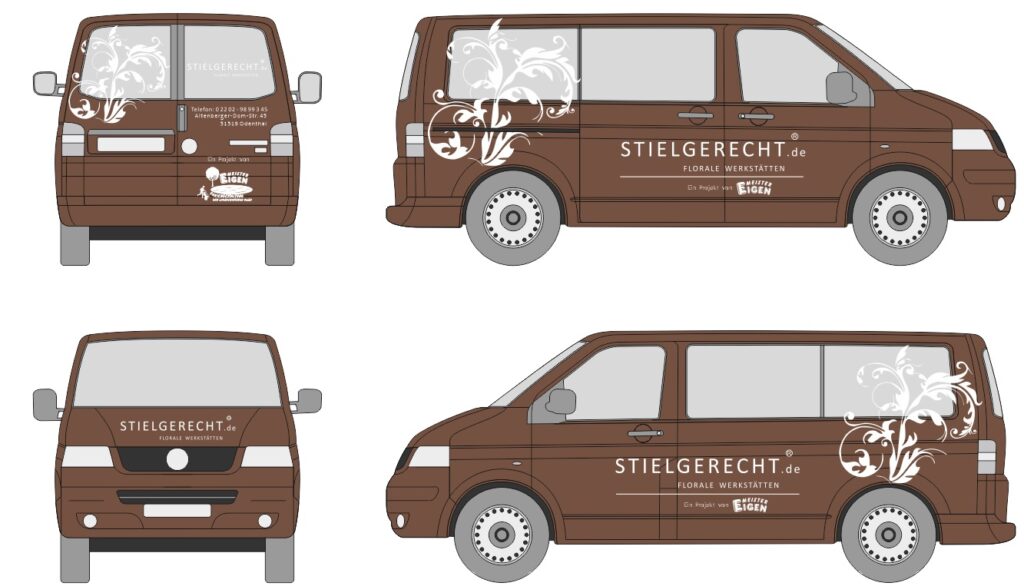 Wir gestalten für unsere Kunden vom Logo über die Visitenkarte, den Flyer und Prospekt bis hin zur Fahrzeugbeschriftung, Ladenbeklebung, Anzeigen und Plakatwerbung.